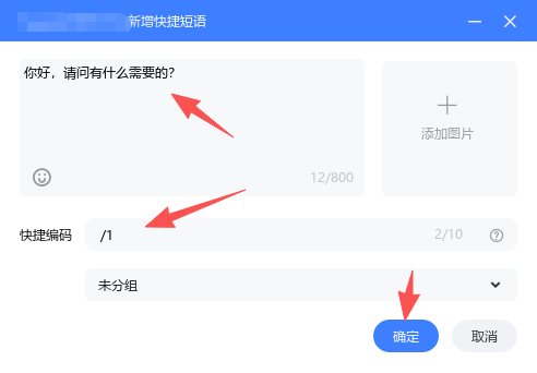 3.设置好新增的快捷短语后,点击确定按钮,注意,快捷编码必须是 \ 符号开头。如下图: