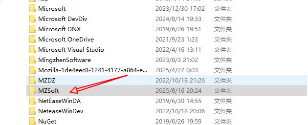 在 “ProgramData” 文件夹中,找到并点击 “MZSoft” 文件夹,进入到下一层级,以便查看其中的相关文件或进行其他操作。